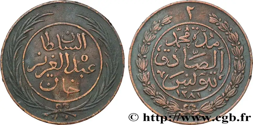 Populaire TUNISIE 2 Kharub frappe au nom de Abdul Aziz AH 1281 1864 fwo_856510 Monde