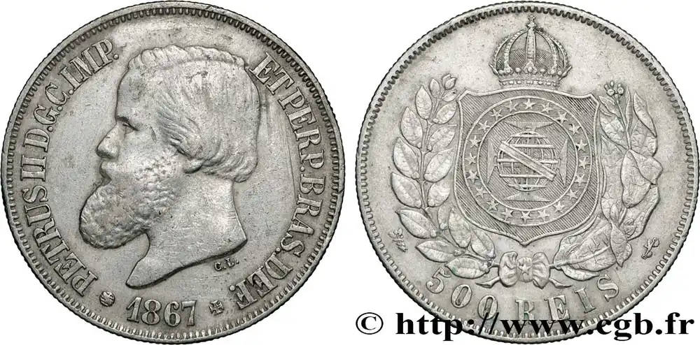 BRÉSIL 500 Reis Empereur Pierre II 1867 fwo_846464 Monde Marque