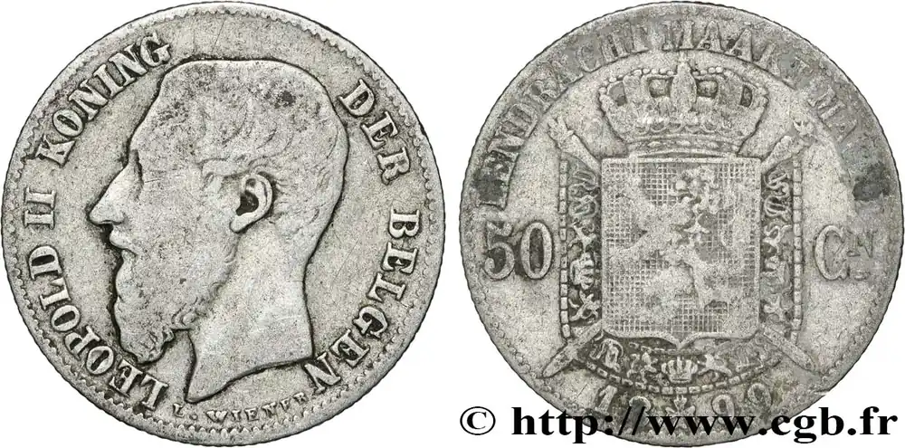 BELGIQUE 50 Centiemen (Centimes) Léopold II légende flamande 1899 fwo_847974 Monde Dernière Chance
