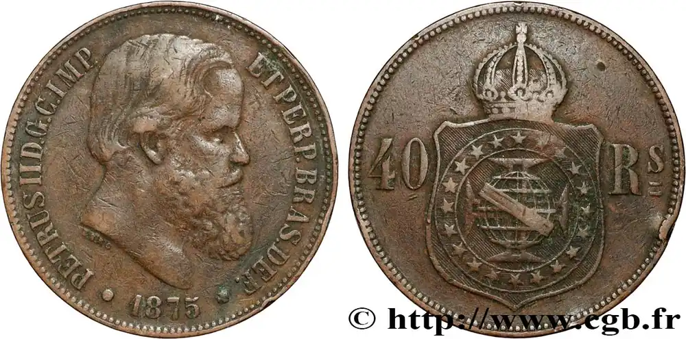 Bon Plan BRÉSIL 40 Réis Empereur Pierre II 1875 fwo_858713 Monde