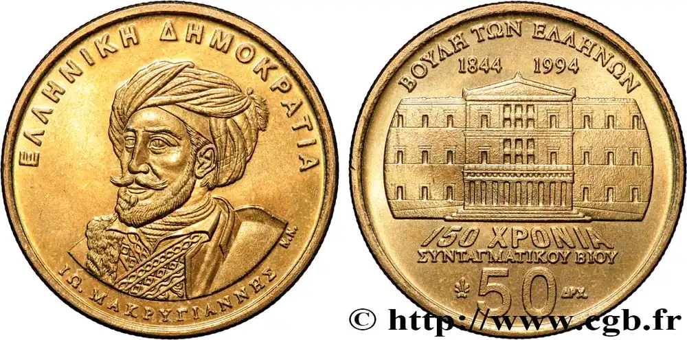 GRÈCE 50 Drachmes 150e anniversaire de la Constitution de 1944 : Yánnis Makriyánnis / parlement 1994 fwo_837813 Monde Dernier Modèle