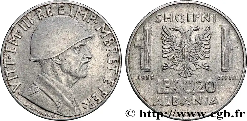 ALBANIE 0,20 Lek Victor-Emmanuel III an XVIII 1939 fwo_871009 Monde Premium