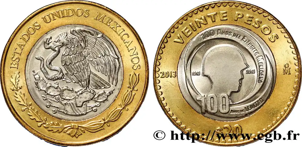 Livraison Mondiale MEXIQUE 20 Pesos centenaire de l’Armée Mexicaine 2013 fwo_844581 Monde