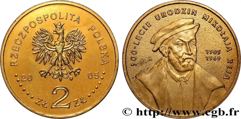 Nouvel Arrivage POLOGNE 2 Zlote aigle / 500e anniversaire de Mikolaj Rej (1505-1569) 2005 Varsovie fwo_821409 Monde