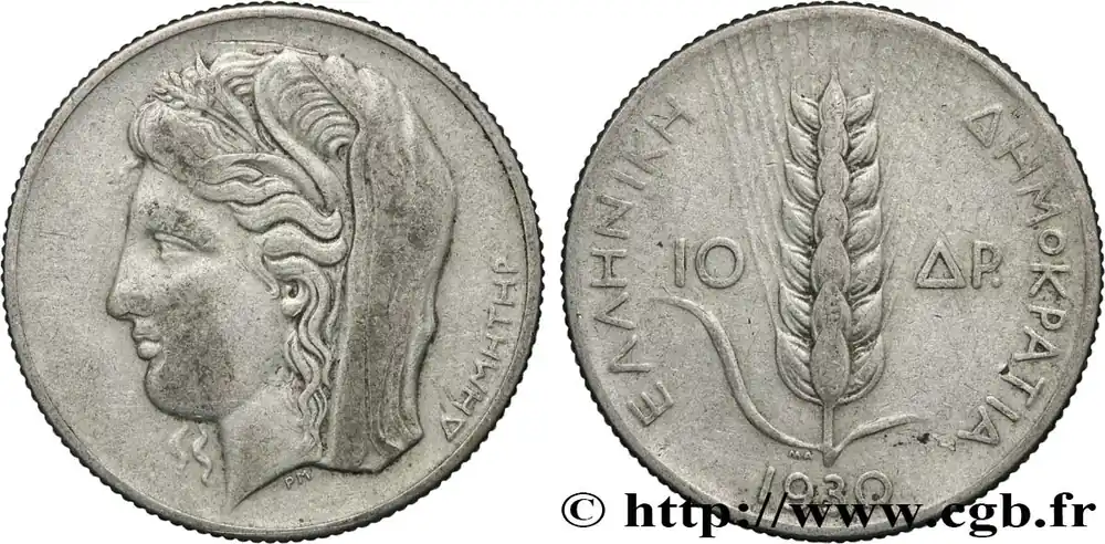 Nouveauté GRÈCE 10 Drachmes épi / Déesse Démeter 1930 Londres fwo_853318 Monde