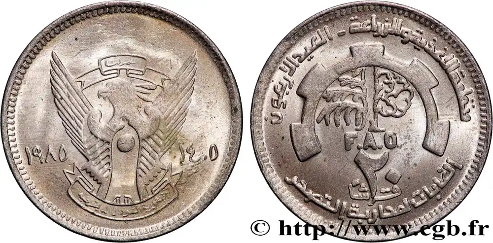 Solde SOUDAN 20 Ghirsh série FAO emblème an 1405 1985 fwo_783503 Monde