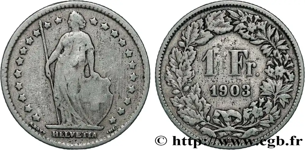SUISSE 1 Franc Helvetia 1903 Berne fwo_838962 Monde Livraison Mondiale