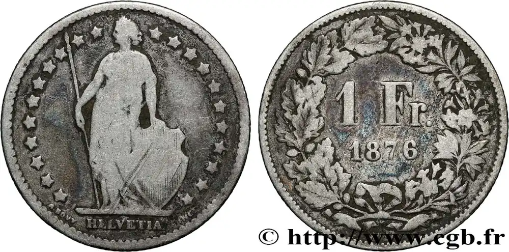 SUISSE 1 Franc Helvetia 1876 Berne fwo_854707 Monde Soldes