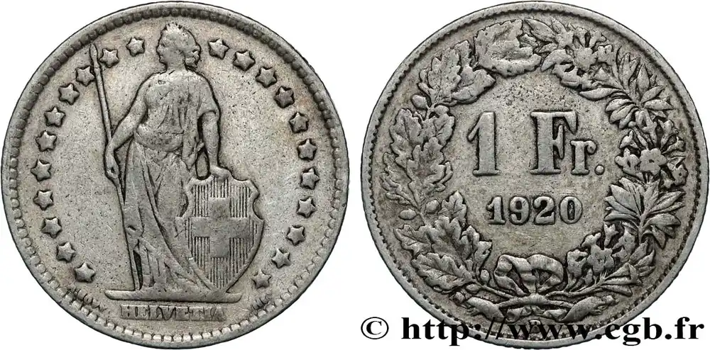 SUISSE 1 Franc Helvetia 1920 Berne fwo_854774 Monde Garantie Incluse