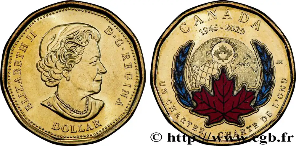CANADA 1 Dollar 75e anniversaire de la Charte des l’Organisation des Nations Unies 2020 MRC Winnipeg fwo_825146 Monde Meilleure Qualité