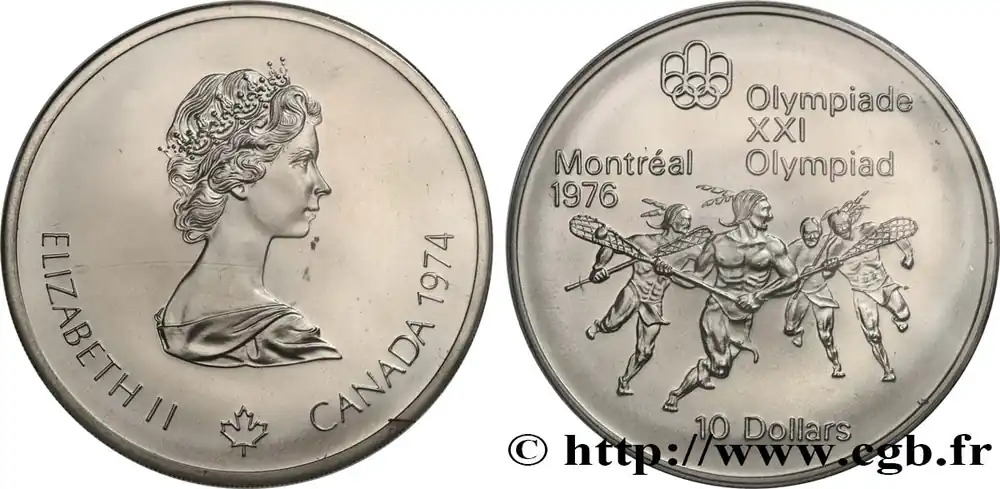 CANADA 10 Dollars JO Montréal 1976 indiens jouant à la Crosse 1974 fwo_838820 Monde Tendance