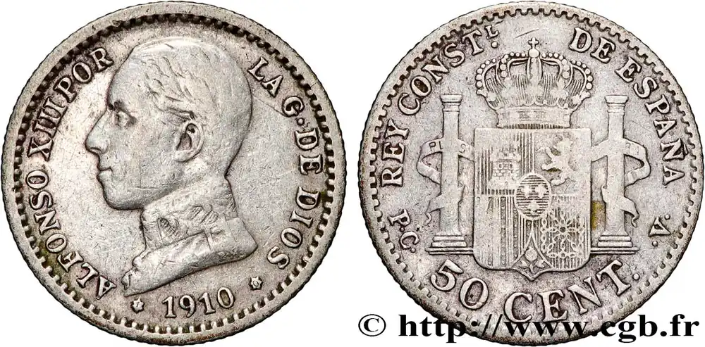 Bon Plan ESPAGNE 50 Centimos Alphonse XIII (10) 1910 Madrid fwo_862077 Monde