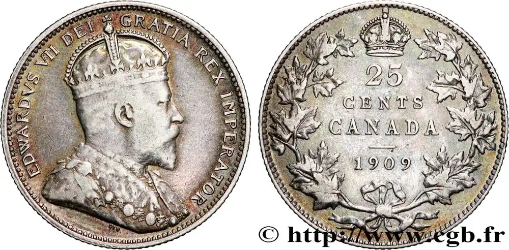 CANADA 25 Cents Edouard VII 1909 fwo_867412 Monde Réduction