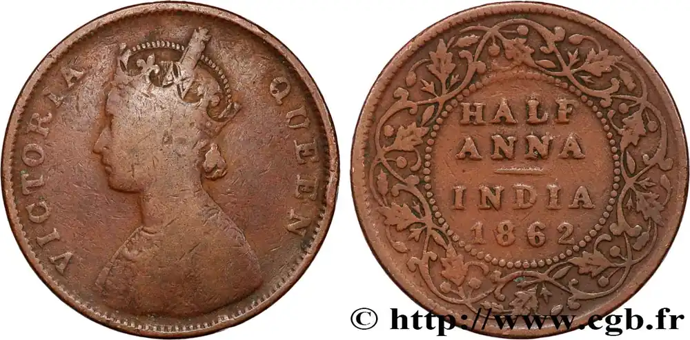 Certifié INDES BRITANNIQUES 1/2 Anna Victoria 1862 Bombay fwo_875690 Monde