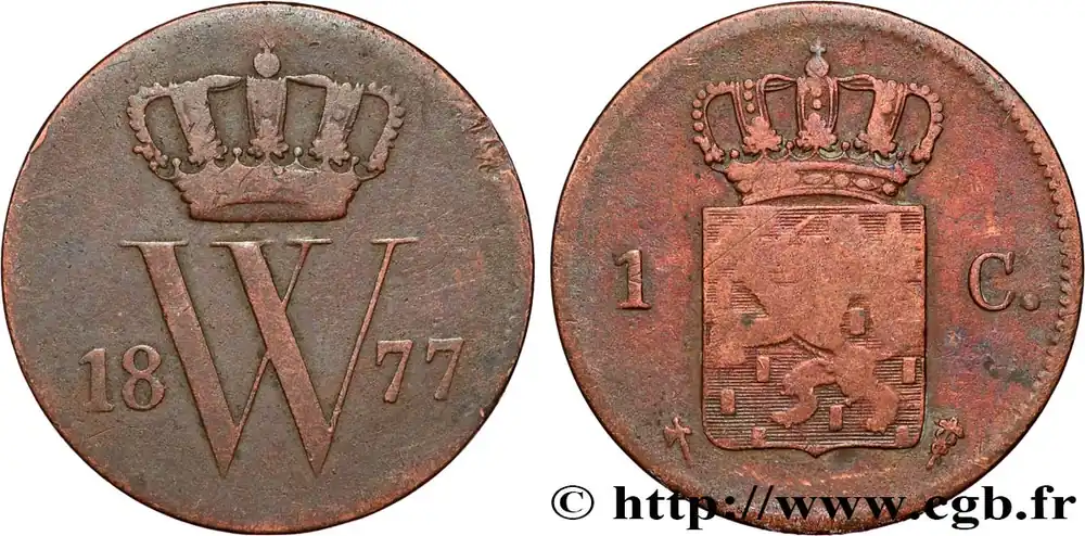 Remise PAYS-BAS 1 Cent emblème monogramme de Guillaume III 1877 Utrecht fwo_856579 Monde