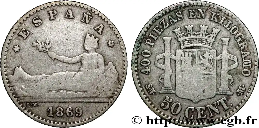 ESPAGNE 50 Centimos “ESPAÑA” 1869 Madrid fwo_875975 Monde Vente Flash