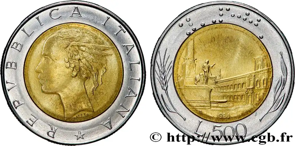 Achetez Aujourd’hui ITALIE 500 Lire tête de femme représentant la République / Place et Palais du Quirinal à Rome 1986 Rome – R fwo_865862 Monde