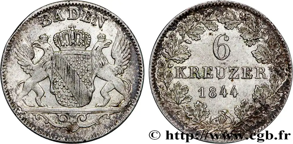 ALLEMAGNE – BADE 6 Kreuzer 1844 fwo_878603 Monde Original