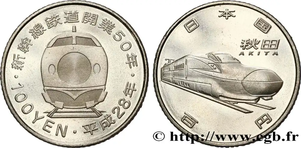 JAPON 100 Yen 50e anniversaire du Shinkansen : Akita Shinkansen an 28 2016 fwo_850104 Monde Nouvelle Collection