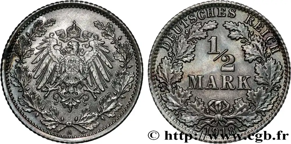 Nouvelle Collection ALLEMAGNE 1/2 Mark Empire aigle impérial 1918 Berlin fwo_855666 Monde