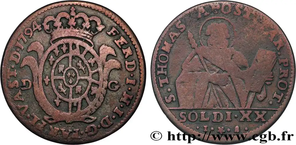 Nouvel Arrivage ITALIE – PARME 20 Soldi Duché de Parme, Plaisance et Guastalla St Thomas 1794 Parme fwo_868895 Monde