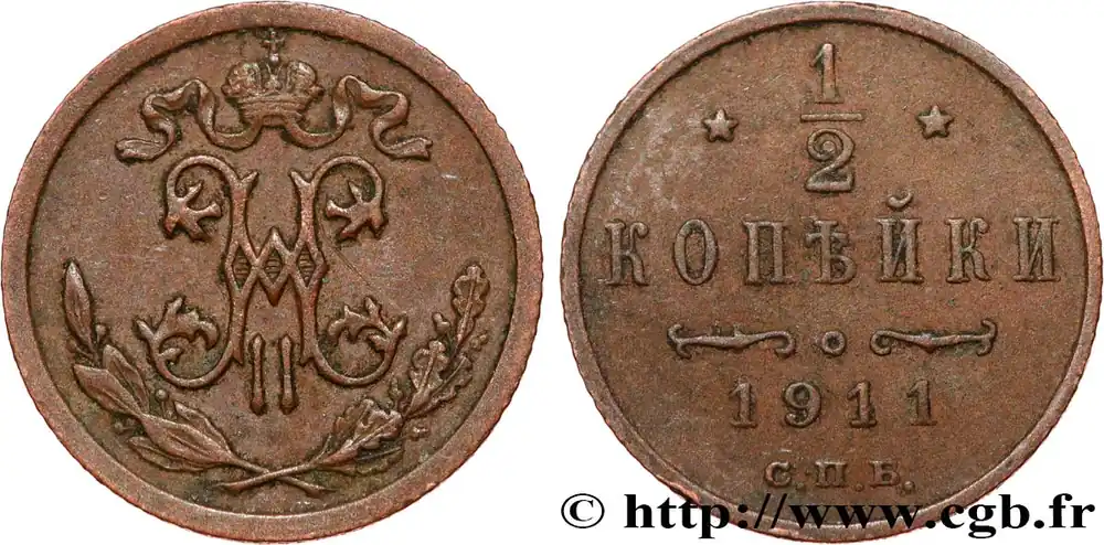 Prix Réduit RUSSIE 1/2 Kopeck monogramme Nicolas II 1911 Saint-Petersbourg fwo_811405 Monde
