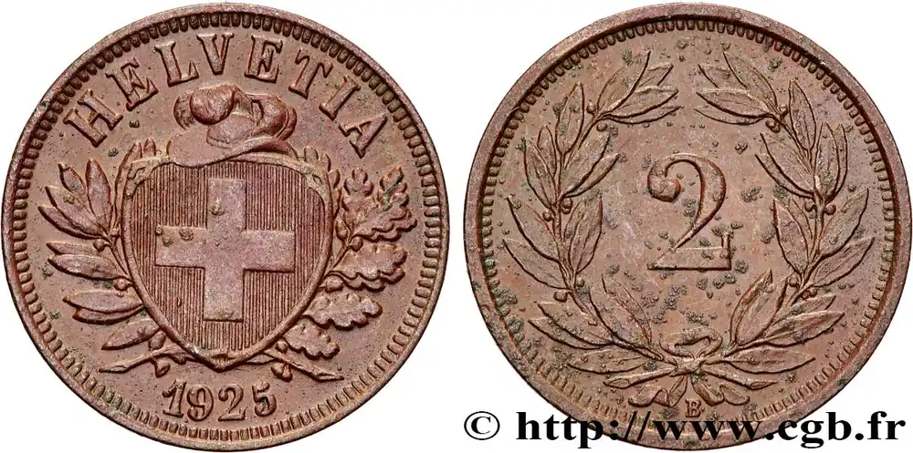 SUISSE 2 Centimes (Rappen) croix suisse 1925 Berne – B fwo_816136 Monde Promotion