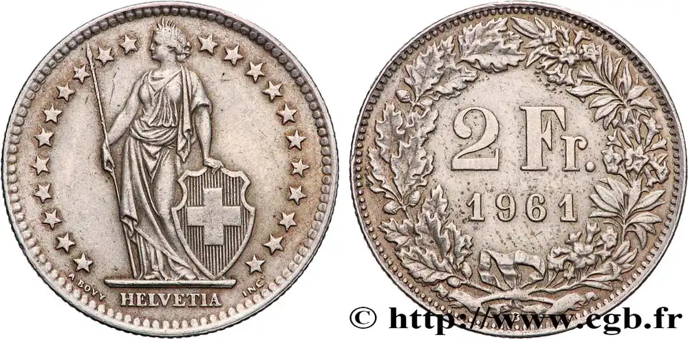 SUISSE 2 Francs Helvetia 1961 Berne – B fwo_859094 Monde Authentique