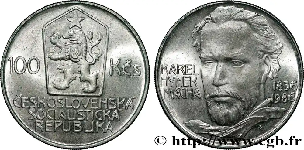 TCHÉCOSLOVAQUIE 100 Korun 150e anniversaire de la mort de Karel Hynek Mácha 1986 fwo_865201 Monde Réduction