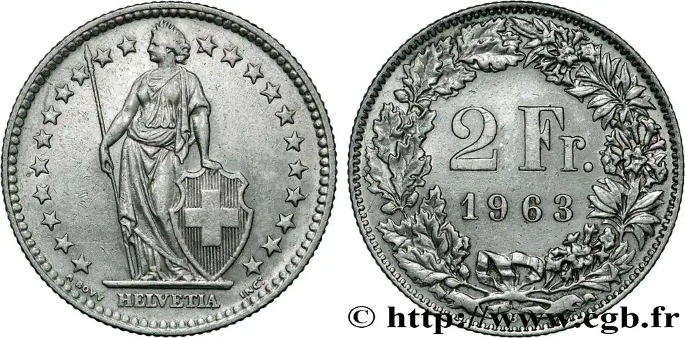 SUISSE 2 Francs Helvetia 1963 Berne fwo_868509 Monde Certifié