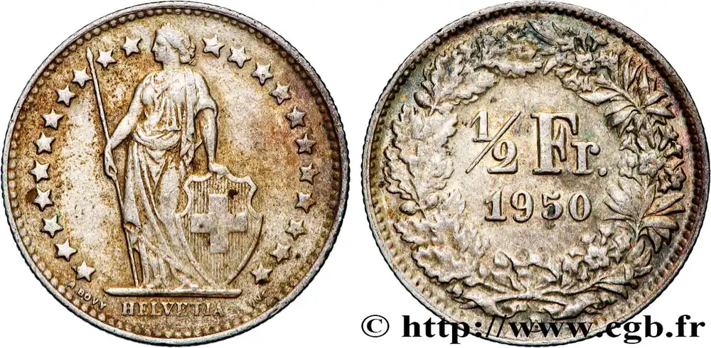 SUISSE 1/2 Franc Helvetia 1950 Berne fwo_878153 Monde Usine Directe