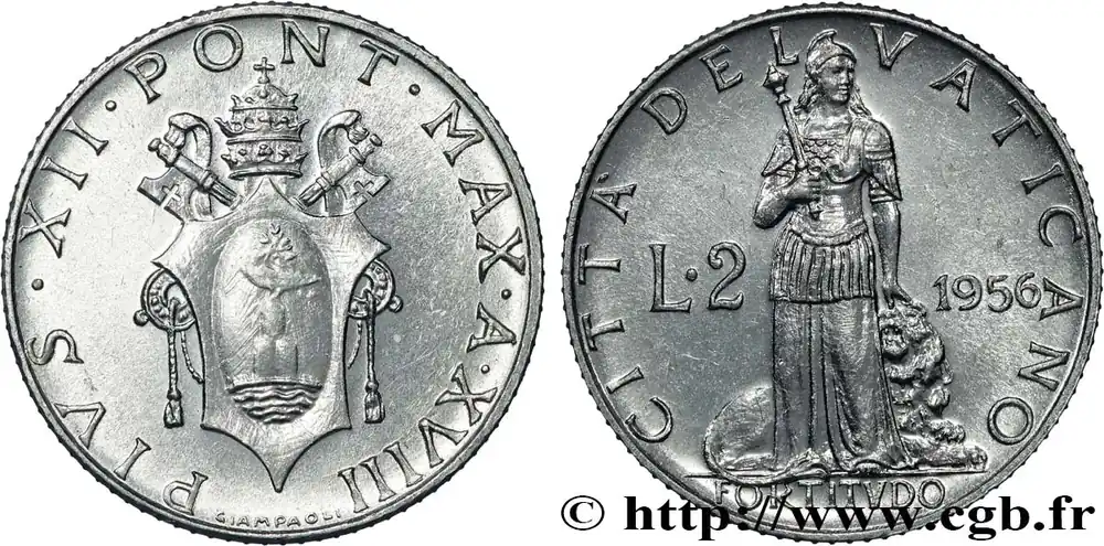 VATICAN ET ÉTATS PONTIFICAUX 2 Lire armes du Vatican, pontificat de Pie XII an XVIII / la “Force” 1956 fwo_824435 Monde Vente Flash