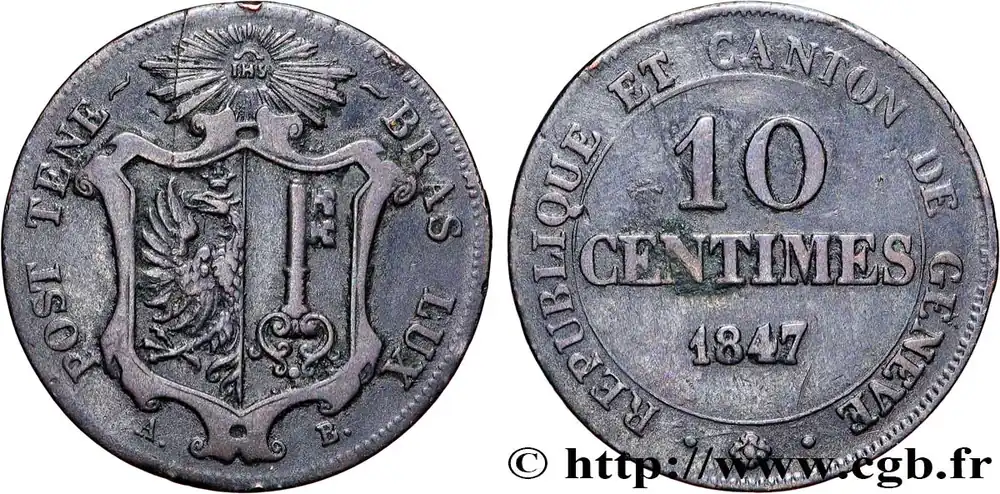 Top Qualité SUISSE – RÉPUBLIQUE DE GENÈVE 10 Centimes 1847 fwo_878239 Monde