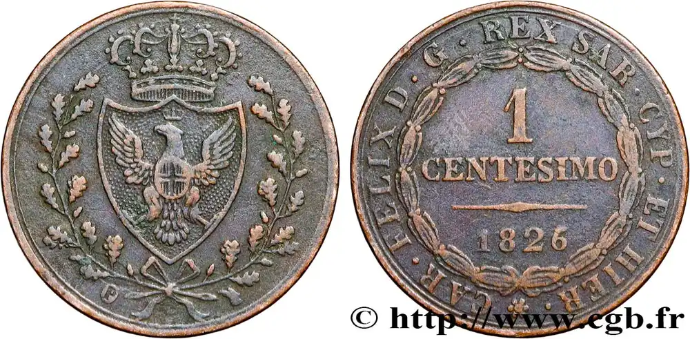 ITALIE – ROYAUME DE SARDAIGNE 1 Centesimo Charles Félix “P” 1826 Turin fwo_878503 Monde Super Prix