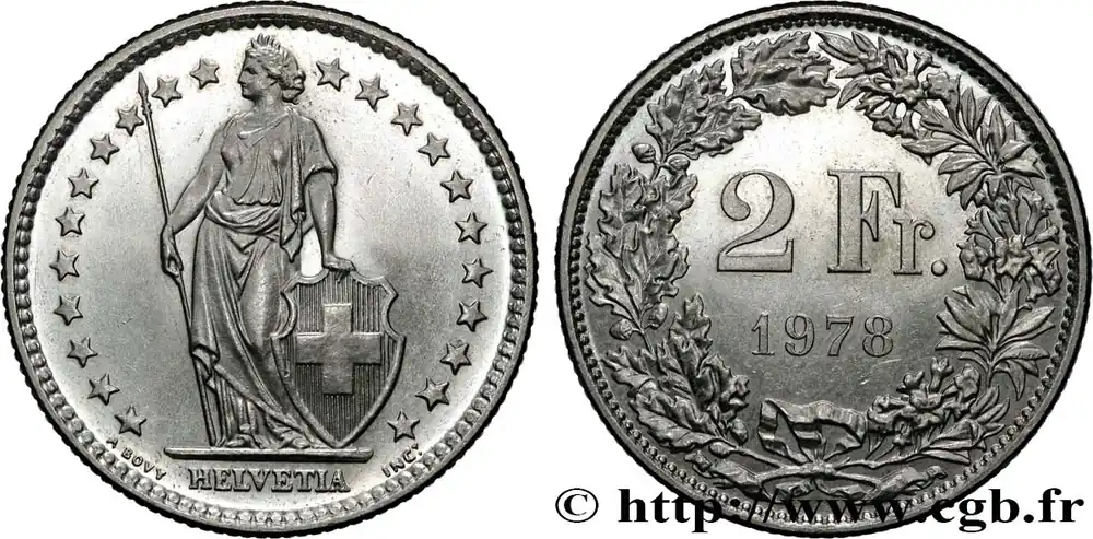 Promotion SUISSE 2 Francs Proof Helvetia 1978 Berne – B fwo_868552 Monde
