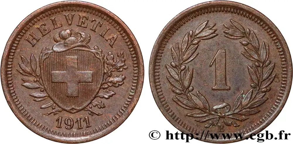 SUISSE 1 Centime (Rappen) Croix Suisse 1911 Berne fwo_836165 Monde Commander Vite