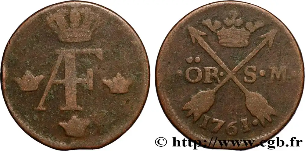 SUÈDE 1 Ore Adolphe Frédéric Ier 1761 fwo_884728 Monde Vente Directe