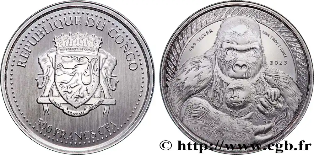 Jusqu’à Épuisement Des Stocks ARGENT D’INVESTISSEMENT 1 Oz – 500 Francs Gorille 2023 fwo_883429 Monde
