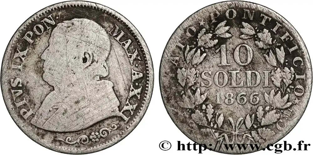 Jusqu’à Épuisement Des Stocks VATICAN ET ÉTATS PONTIFICAUX 10 Soldi Pie IX an XXI 1866 Rome fwo_887528 Monde