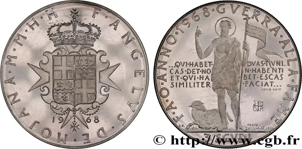 Livraison Express ORDRE SOUVERAIN DE MALTE 3 Scudi Proof Frà Angelus de Mojana 1968 S.M.O.M., Rome fwo_887704 Monde