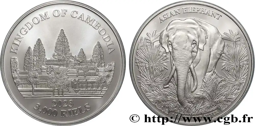 ARGENT D’INVESTISSEMENT 1 Oz – 3000 Riels Proof Éléphant 2023 fwo_883102 Monde En Vogue