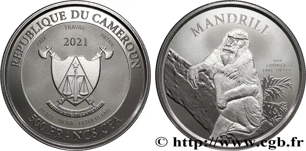 ARGENT D’INVESTISSEMENT 1 Oz – 500 Francs CFA Mandrill 2021 fwo_883529 Monde Jusqu’à Épuisement Des Stocks