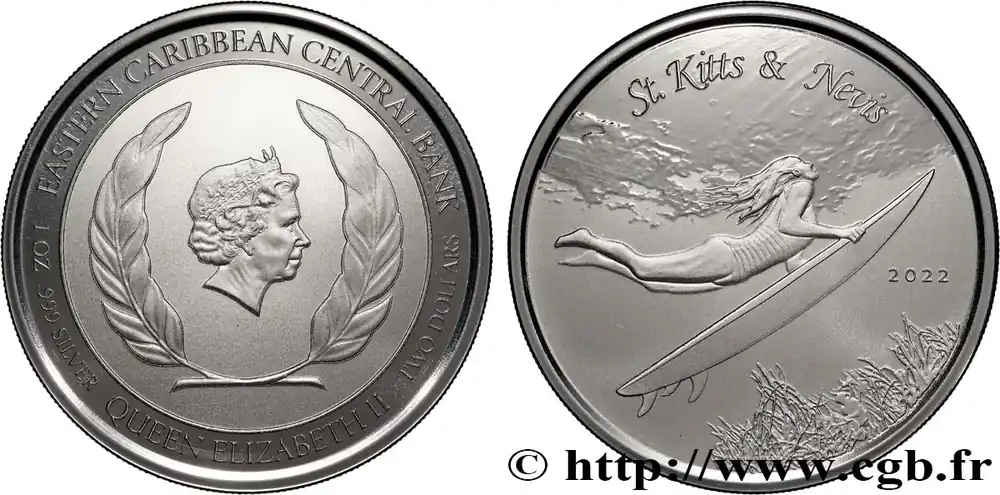 ARGENT D’INVESTISSEMENT 1 Oz – 2 Dollars Surfeuse 2022 fwo_883591 Monde Prix Cassé