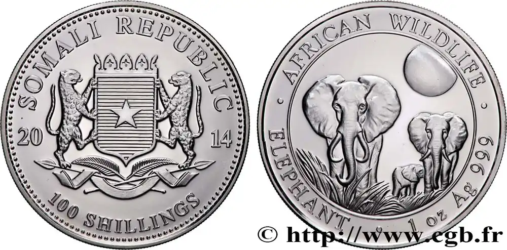 ARGENT D’INVESTISSEMENT 1 Oz – 100 Shillings Éléphant 2014 fwo_884078 Monde Artisanat