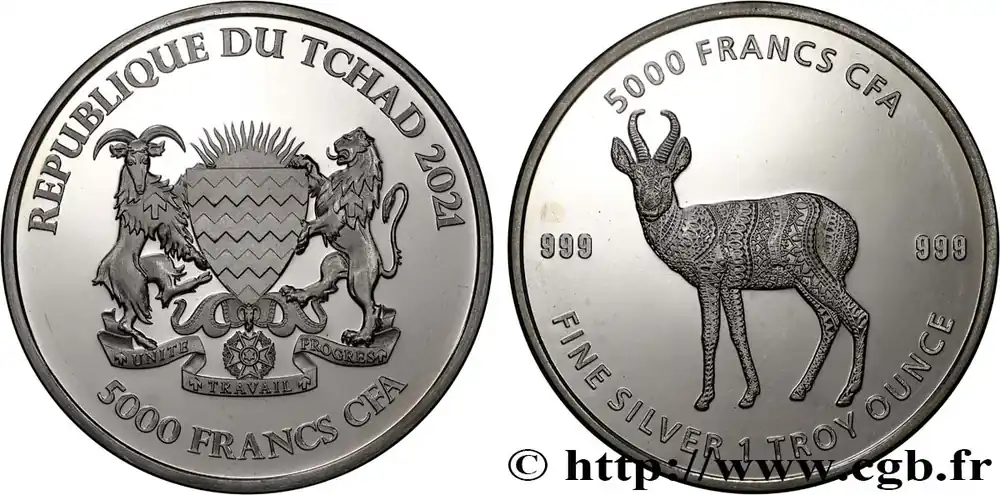 ARGENT D’INVESTISSEMENT 1 Oz – 5000 francs Antilope 2021 fwo_884106 Monde Jusqu’à Épuisement Des Stocks