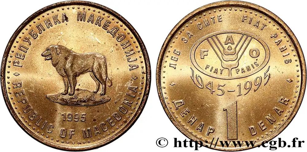 MACÉDOINE DU NORD 1 Denar chien de berger Shar Planina 1995 fwo_791649 Monde Édition Limitée