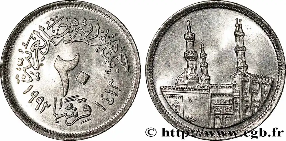 Usine Directe ÉGYPTE 20 Piastres Mosquée Al-Azhar Ah 1413 1992 fwo_783419 Monde