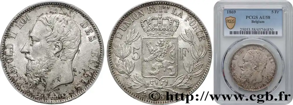Top Qualité BELGIQUE – ROYAUME DE BELGIQUE – LÉOPOLD II 5 Francs 1869 fwo_848241 Monde