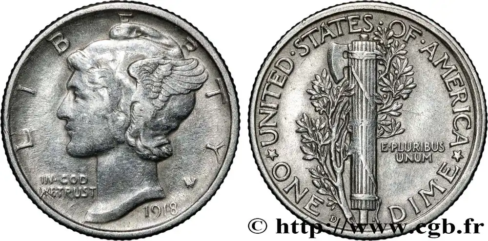 Tendance ÉTATS-UNIS D’AMÉRIQUE 1 Dime Mercury 1918 Denver fwo_868717 Monde