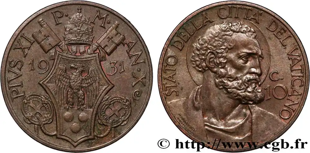 VATICAN ET ÉTATS PONTIFICAUX 10 Centesimi Pie XI an X 1931 Rome fwo_890252 Monde Dernier Modèle